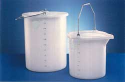 Balde em polipropileno autoclavável graduado silk screen sem bico e com alça, suporta até 135°C .