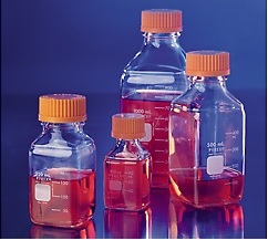 Frasco de armazenamento de vidro quadrado PYREX®, com tampa de roscaOs frascos quadrados são fabricados a partir de vidro borosilicato PYREX ® para resistência química e térmica. Os frascos quadrados são mais fáceis de manusear, requerem menos espaço (13-20%) na prateleira ou na autoclave e são ideais para mistura, amostragem e armazenamento. As características incluem graduações brancas do esmalte, marcação moldada na parte de cima do frasco indica a capacidade maxíma. Garrafas incluem tampa no cor laranja em polipropileno com vedação e anel anti-gotejamento.